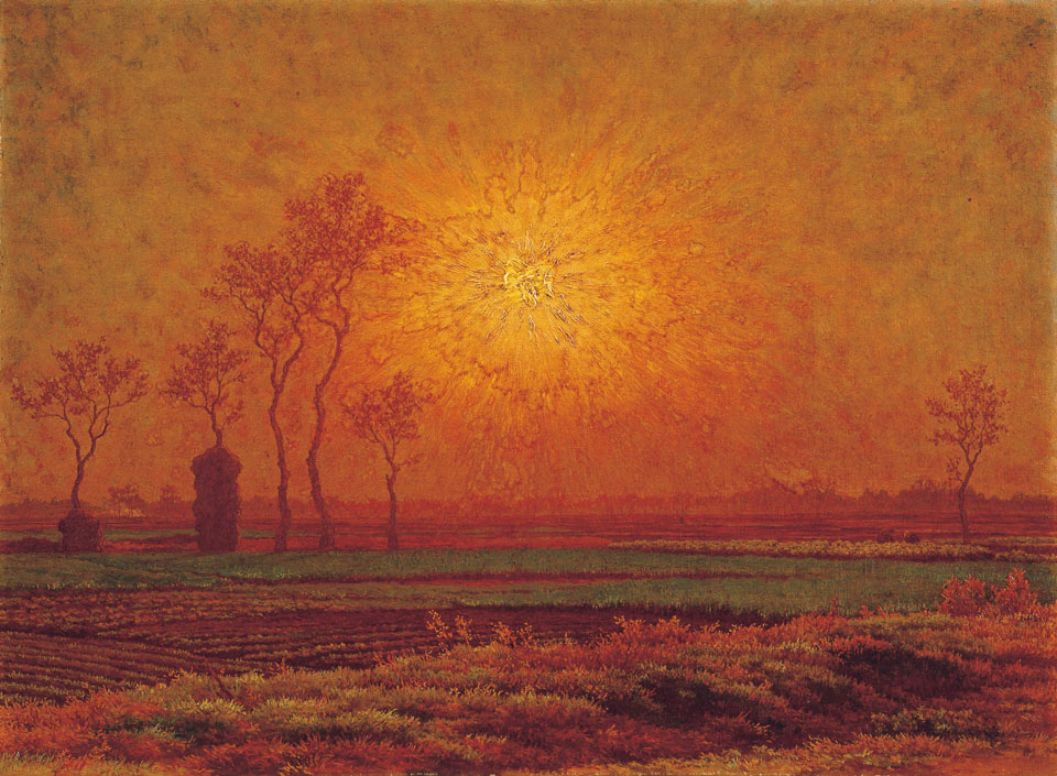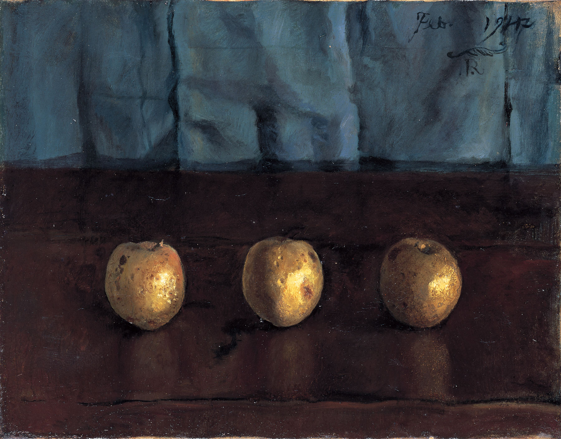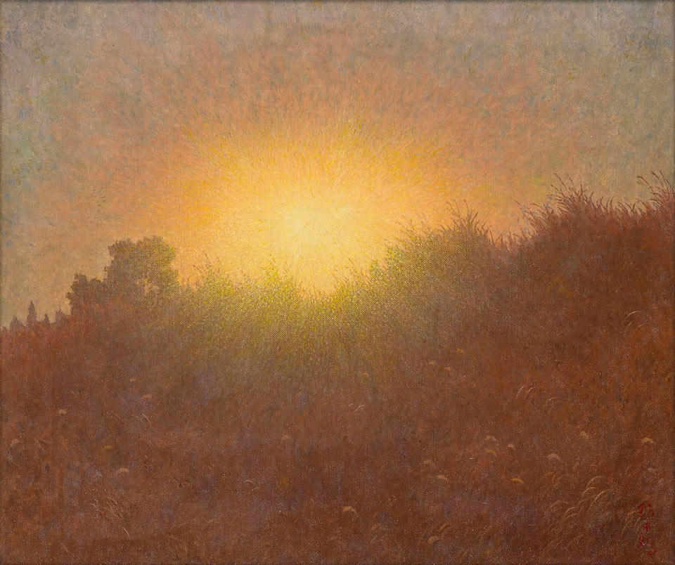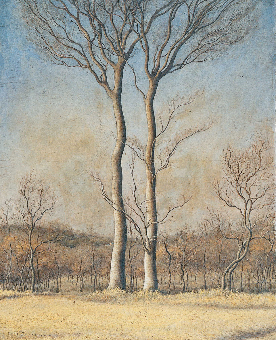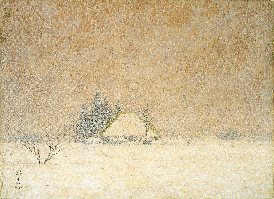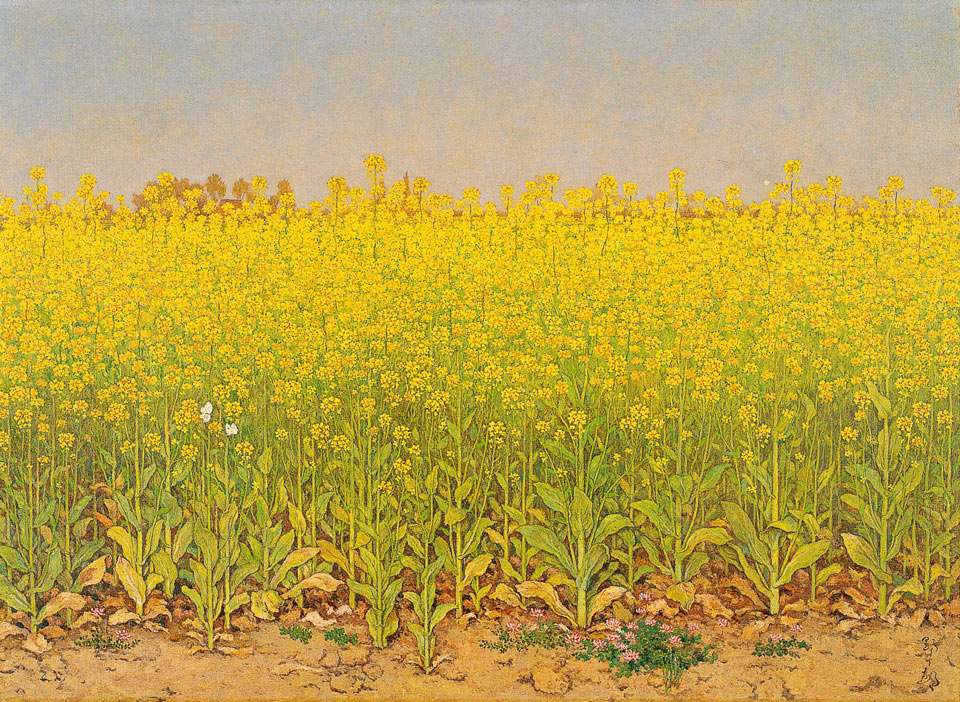 しかし同時代の美術の流れから断絶していたわけではありません。明治末頃に多くの若い日本作家たちの心を惹きつけたフィンセント・ファン・ゴッホ(1853-90)に彼も大きな影響を受けています。そして草土社を結成した岸田劉生(1891-1929)たちが大正期に展開した細密な写実描写は、その静謐で深い精神性をたたえた表現によって野十郎に強い感化をもたらし、彼の画業の方向性を決定づけています。また青木繁(1882-1911)や坂本繁二郎(1882-1969)、古賀春江(1895-1933)など同郷の画家たちとの出会いや交流も彼の画業形成に少なからず寄与しています。