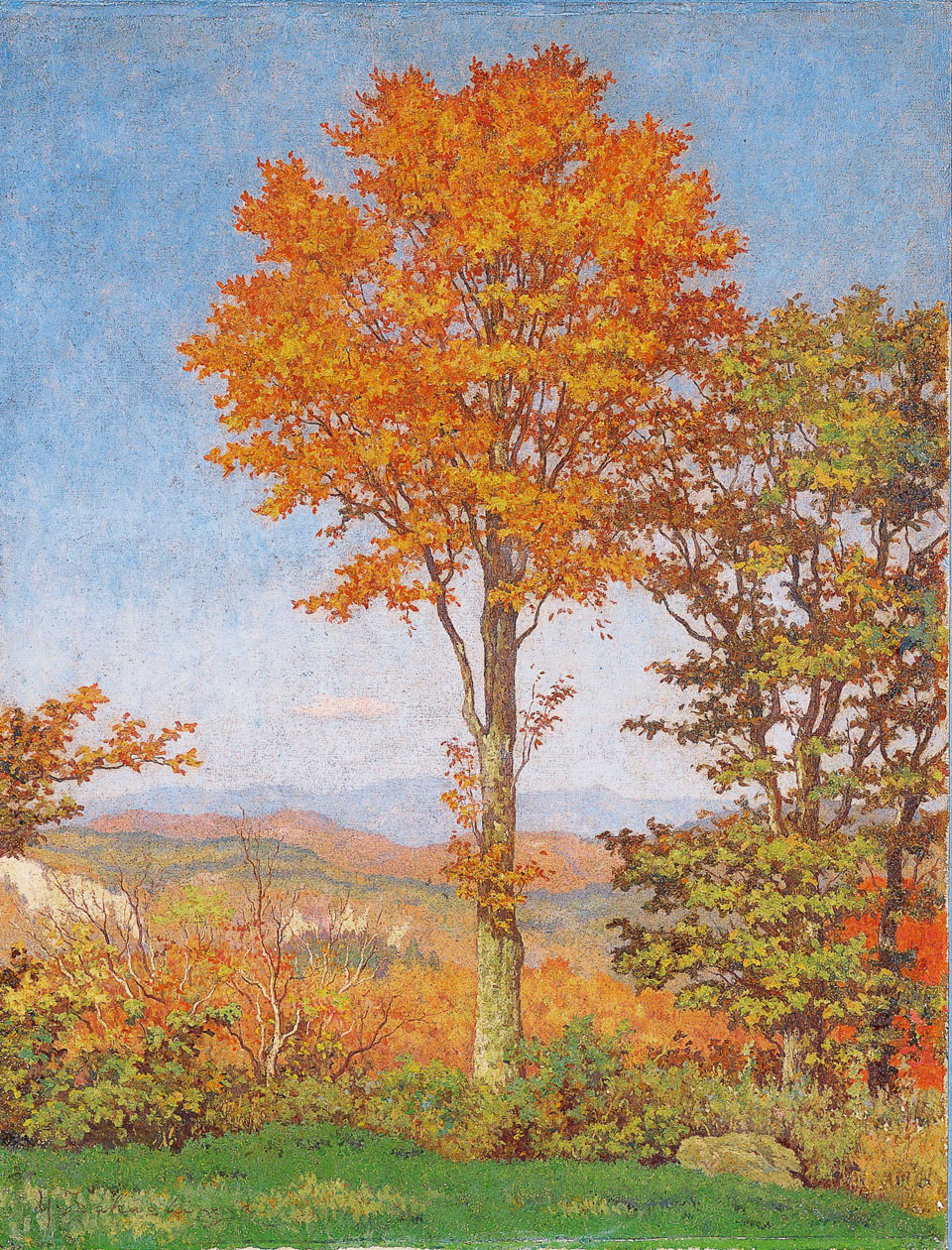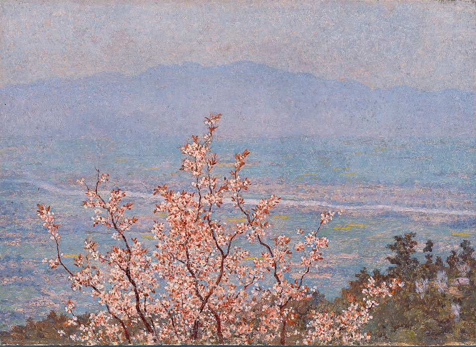 本章ではヨーロッパ留学中や日本全国を旅した際に描いた四季の風景画作品に注目します。旅を愛した野十郎は、独り身の気楽さもあってか、ひとり気ままに旅に出ては、気に入った場所に長期間滞在していました。旅先で見つけた美しい景色をじっと見つめ、歩き回っては立ち止まり、目に見える風景だけでなく、匂いも光も空気までも味わい尽くし、その経験すべてを一枚の絵に凝縮していたようです。そのようにして作り出される野十郎の風景画は、眼前の風景を即興的に写し取ったものではありません。選ぶ対象や構図、いかなる細部もおろそかにしない精緻な描写には、生涯揺らぐことがなかった一貫性を読み取ることもできます。