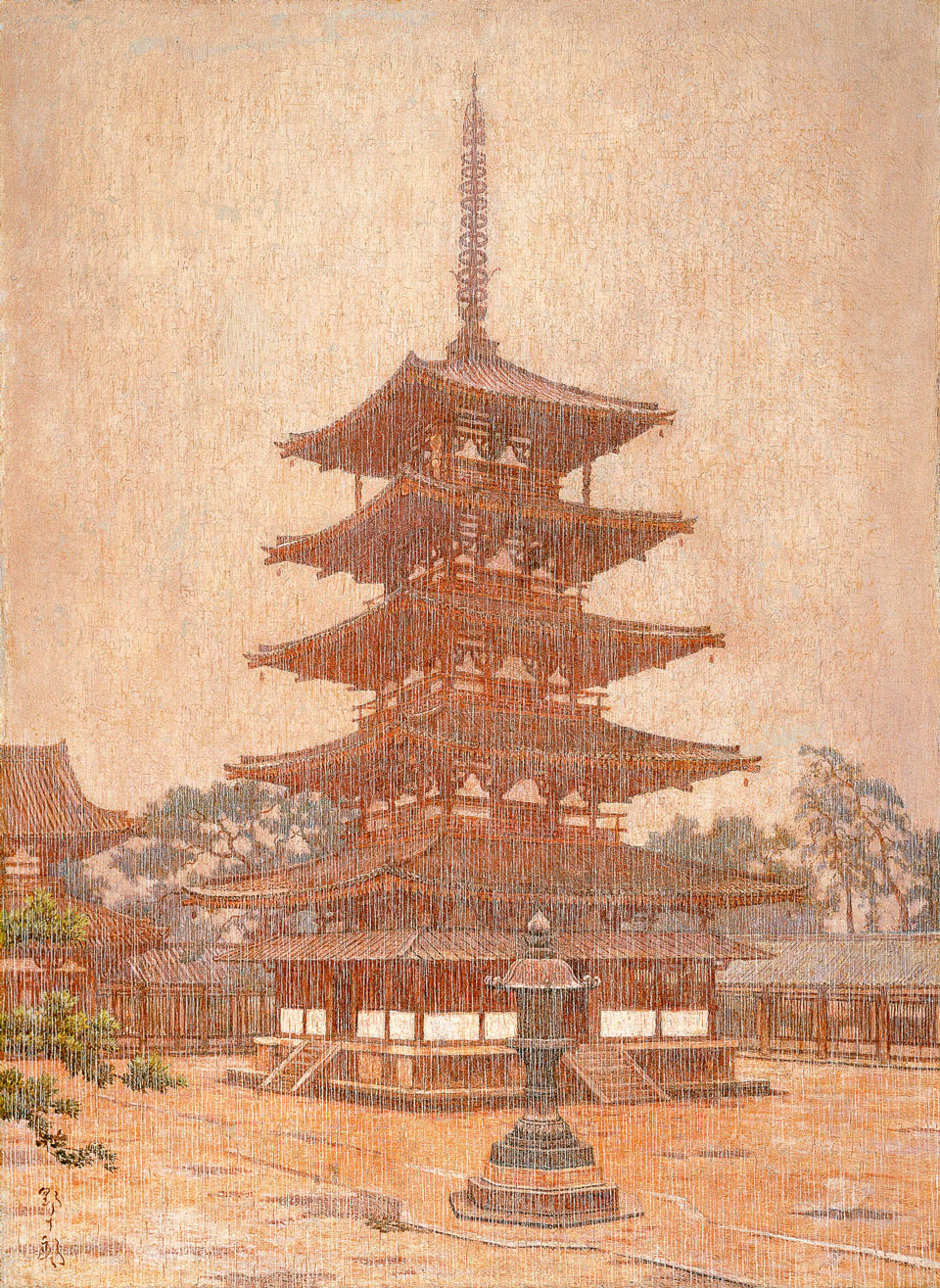 本章では、野十郎が生涯よりどころとしていた広義での仏教をはじめ、広く宗教を予感させる作品を紹介します。寺社や地蔵などの直接的な作品だけでなく、一見すると普通の静物画や風景画にも「晴と雨」、「生と死」など相対立するものを表す仏教的な考え方が込められていることを示します。